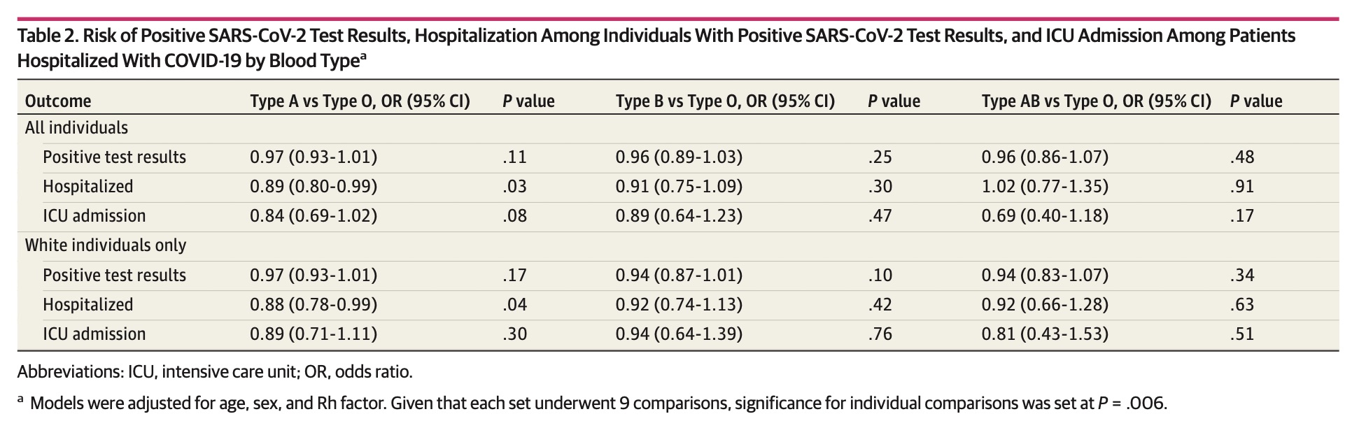 3. BarnkobMB,PottegårdA,StøvringH,etal.ReducedprevalenceofSARS-CoV-2infectioninABObloodgroup O. Blood Adv. 2020;4(20):4990-4993. doi:10.1182/bloodadvances.2020002657